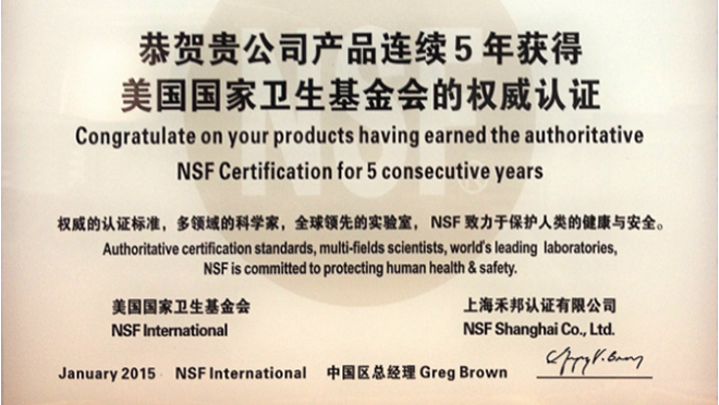 增資控股浙江潤鑫電器有限公司,正式布局POU小水市場;上海制造基地玻璃鋼桶年產(chǎn)超1,000,000只;連續(xù)12年獲得美國NSF認證